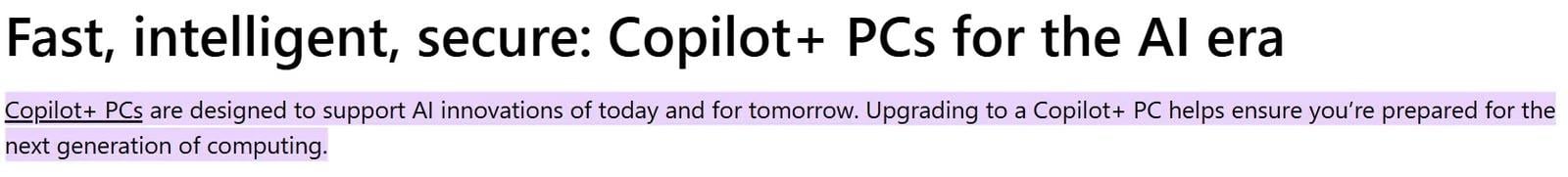Microsoft 亦在宣傳中形容 Copilot+ PC 為「史上最快、最智能的 Windows 電腦」,並強調可協助用戶更高效工作、更快創作及更順暢溝通。