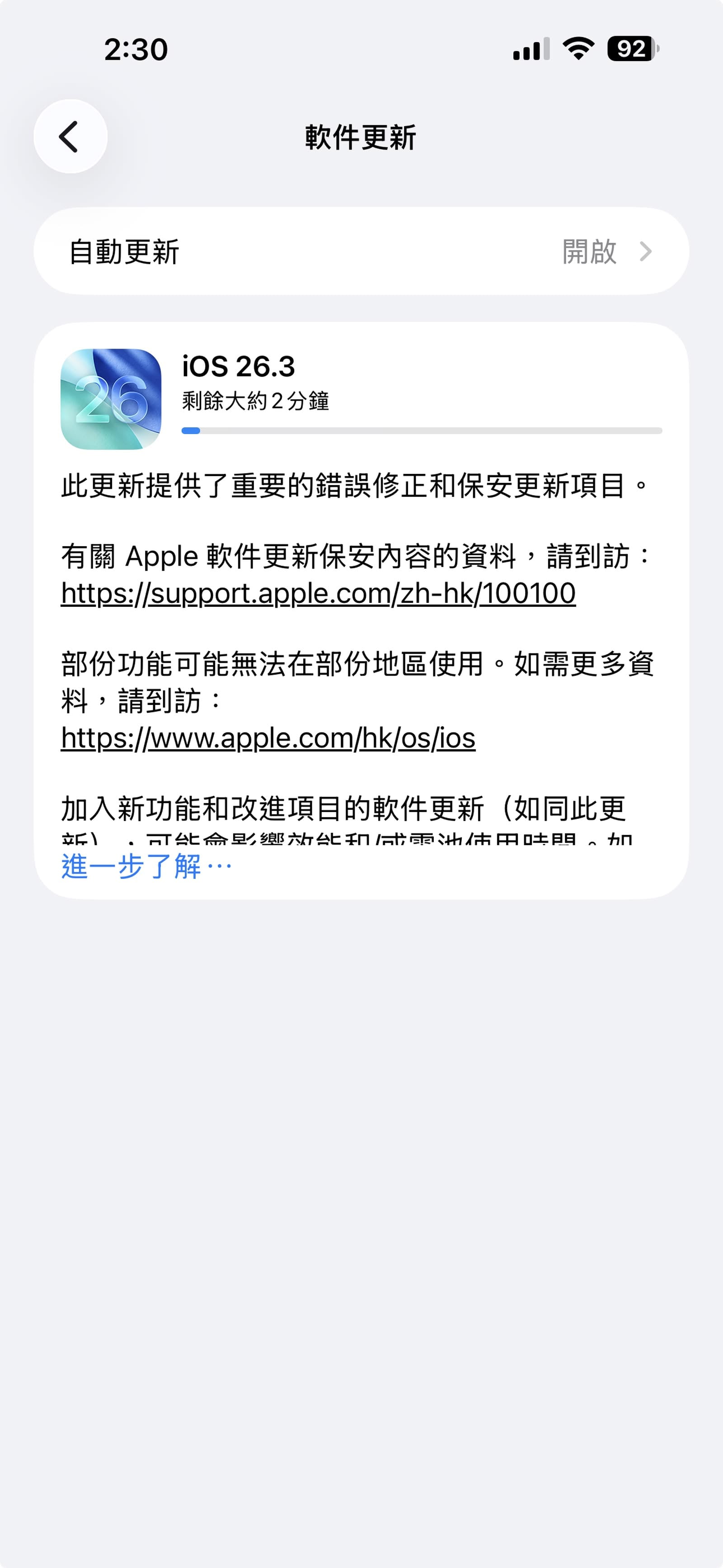 Apple 建議所有用戶儘快更新至 iOS 26.3、iPadOS 26.3 及 macOS Tahoe 26.3。