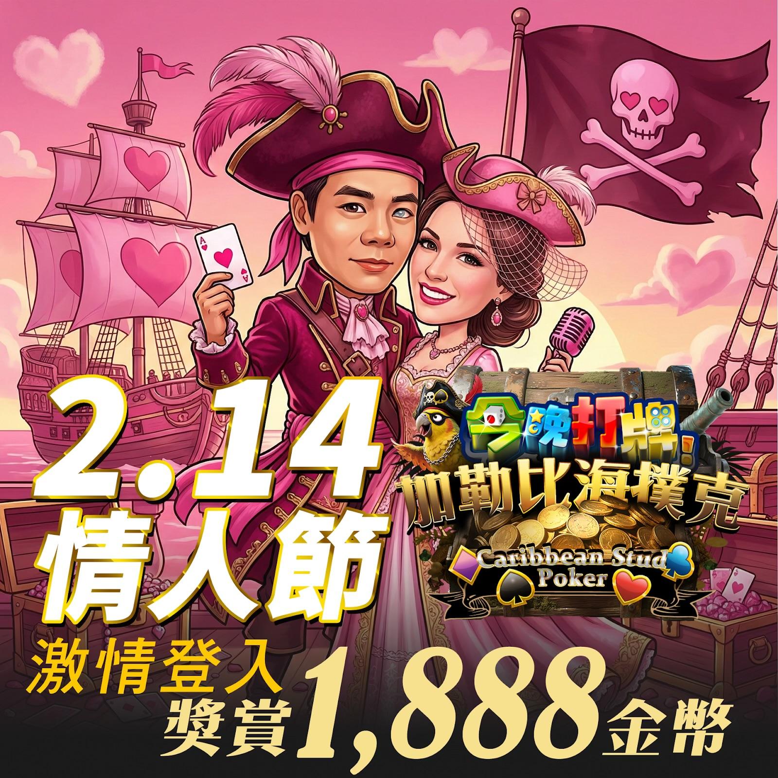 情人節登入<今晚打牌>即送1888金幣