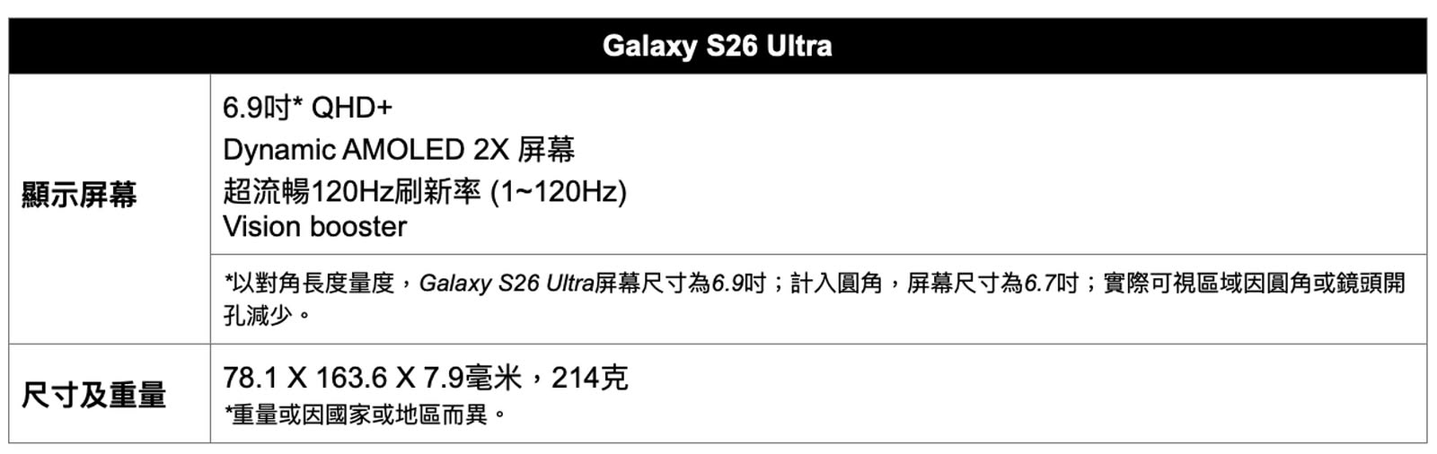 Samsung憑藉多年來在屏幕技術上的創新成果,透過Galaxy S26 Ultra率先帶來全球首創的內置私隱保護屏幕(Privacy Display),為手機屏幕體驗奠定新標準,同時彰顯Samsung在像素層面提升用戶私隱的決心。此外,Galaxy S26 Ultra配備專屬晶片和升級的散熱系統,為更高速、更強大的 AI運算提供效能,並將一切技術融入至今最纖薄的 Ultra 機身當中。