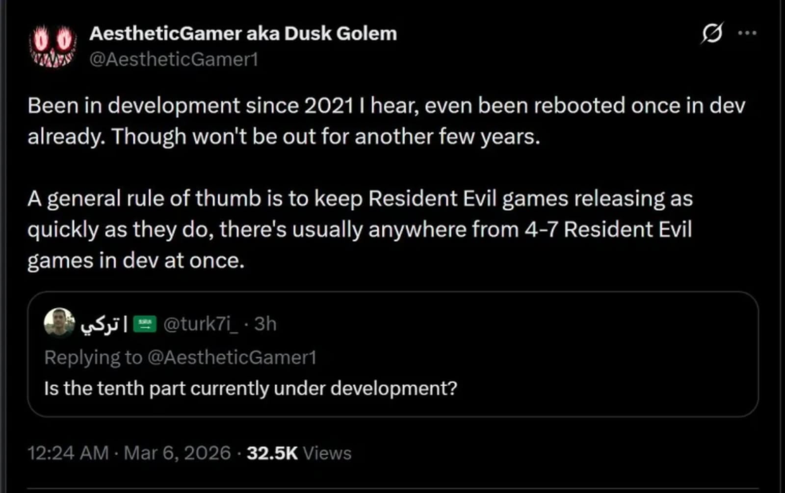 Dusk Golem 同時指出,Capcom 目前的策略是加快推出《生化危機》系列作品的節奏。為了維持系列持續推出新作,公司同時推進多個開發項目,可能同時有 4 至 7 個不同作品正在製作中。