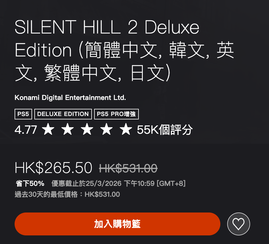 Konami 宣布,《沉默之丘2:重製版》全球銷量已突破 500 萬套,同時遊戲亦已開啟PS5版半價優惠,尚未入手的玩家可留意今次減價消息。
