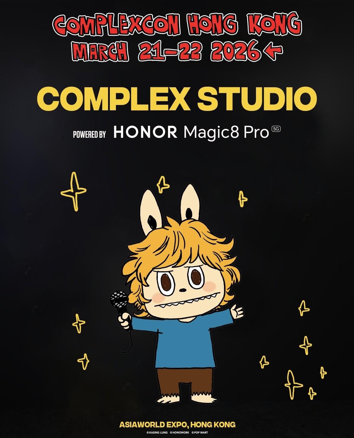 HONOR 表示,HONOR Magic8 Pro 配備 2 億像素 AI 夜神超穩長焦鏡頭,可用作拍攝清晰細緻的夜攝人像。屆時參加者除了可以在 Complex Studio 與《COMPLEX》雜誌封面風格場景合照外,亦可與由今屆活動藝術總監、THE MONSTERS 系列及 LABUBU 創作者 龍家昇 打造的 ComplexCon 香港主視覺圖像合照。