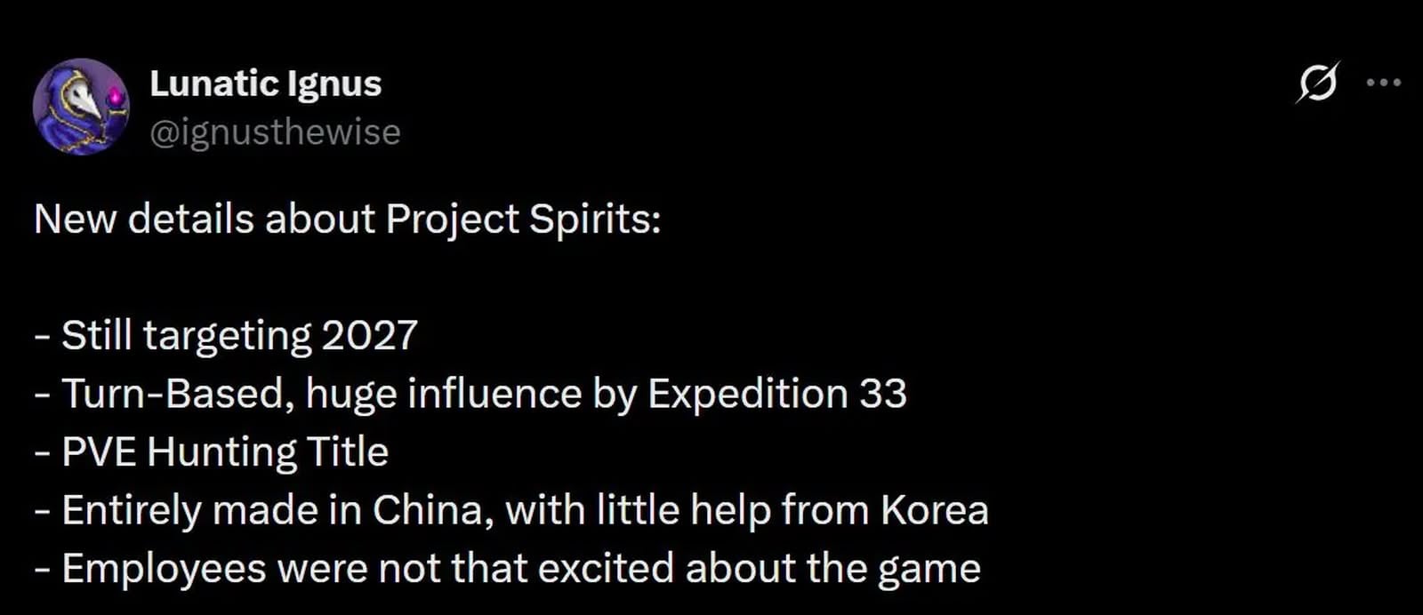 報導指出,《光與影:33號遠征隊》曾奪得年度遊戲,並對業界產生一定影響,促使其他開發團隊嘗試類似方向,而《Project Spirits》正是其中之一。