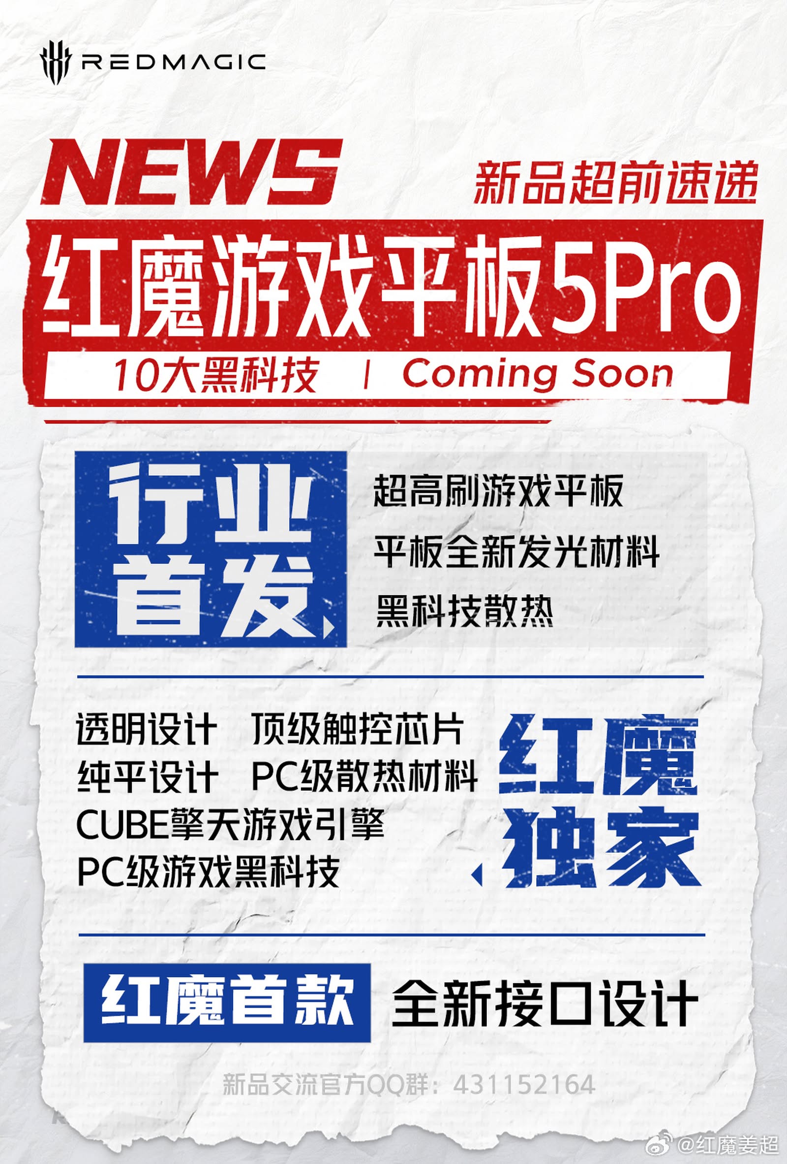 RedMagic 近日預告即將推出全新電競平板,定位直指早前推出的 Lenovo Legion Tab Gen 5。官方在預告中透露,新機將搭載「10 項尖端技術」,並強調螢幕將具備「超高刷新率」,引發玩家關注。