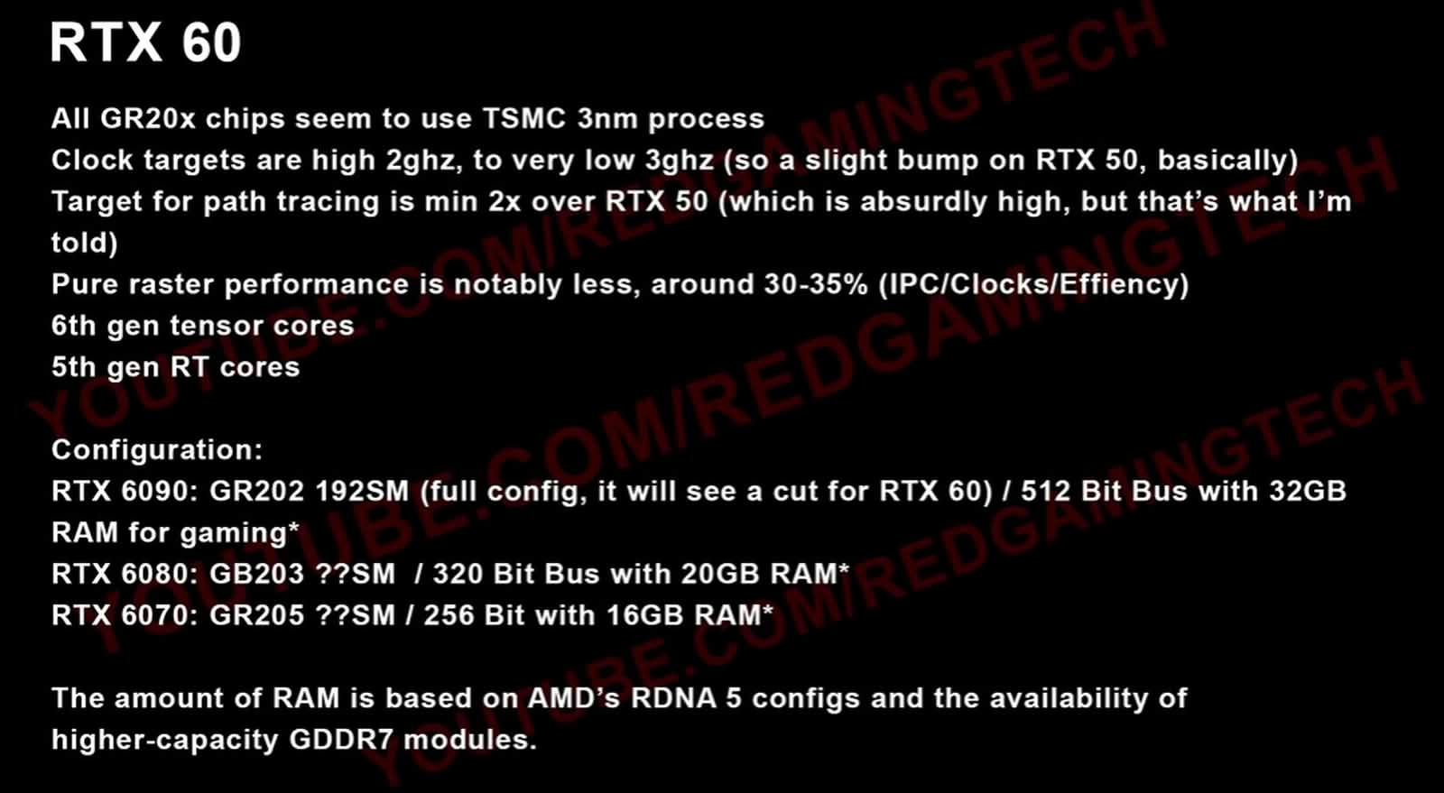 在純光柵化效能方面(未啟用光追),RTX 60 系列預計較現有 RTX 50 系列提升約 30% 至 35%。不過,真正的重點在光追性能,尤其是 Path Tracing(完整路徑追蹤)場景,消息指效能有望實現接近兩倍提升,將成為新一代顯卡的主要賣點。