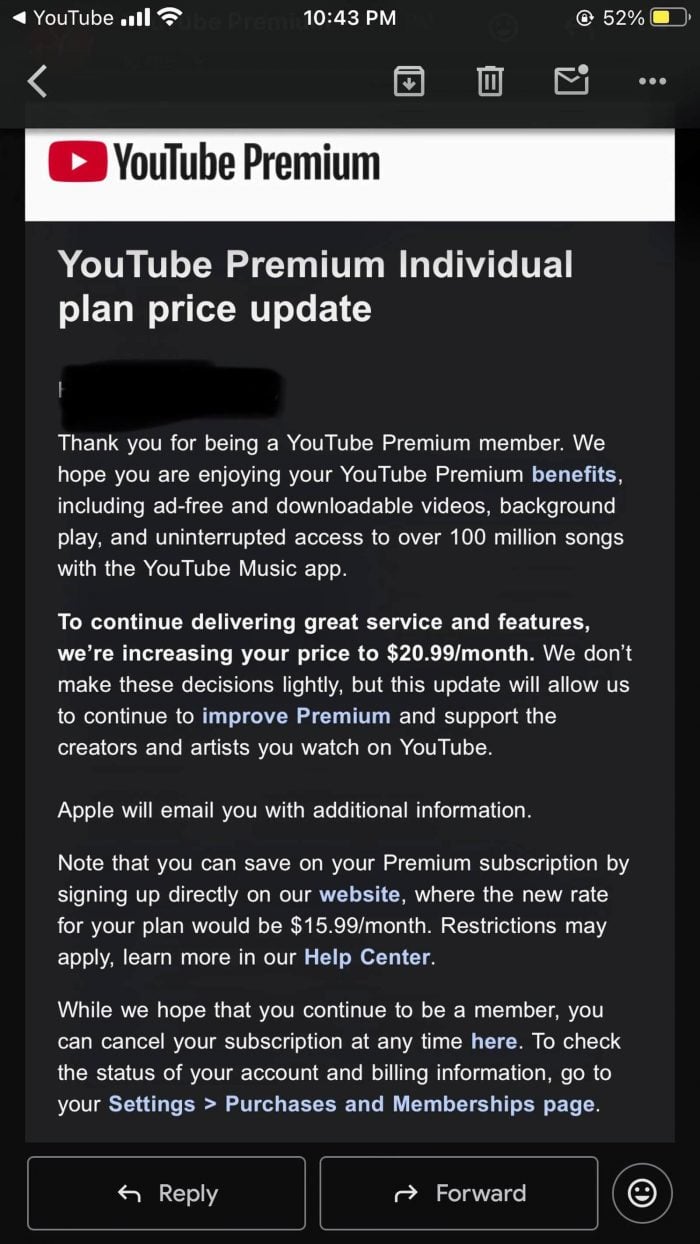 影音平台 YouTube 宣布調整美國地區 Premium 訂閱價格,為自 2023 年中以來首次加價。根據用戶在 Reddit 分享的消息,部分用戶已收到電郵通知價格變動,而最新收費亦已在官方網站頁面更新。