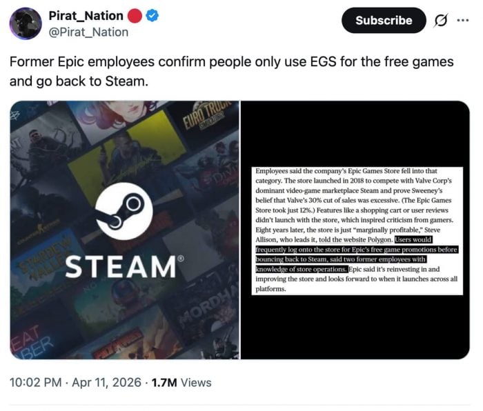 前員工爆料Epic難留客 免費送遊戲仍敵不過Steam