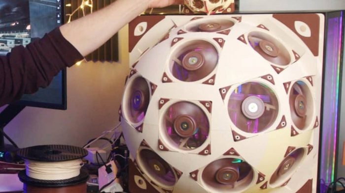 YouTube 頻道 Major Hardware 打造出一款相當搶眼的遊戲 PC 側板改裝方案,名為 Noctua SuperDome。這款設計以半球形外罩取代 Lian Li O11 Dynamic Evo XL 原有玻璃側板,並在半球結構上安裝 15 把 120mm Noctua NF-A12x25 G2 PWM 風扇,藉此強化整體散熱能力。