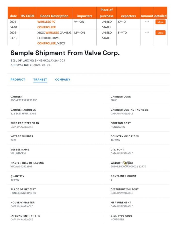 Valve 旗下新一代 Steam 手掣再有新進展。據爆料人 Brad Lynch 透露,Valve 已於上週在美國接收首批大批量進口的「無線 PC 控制器」,相關資料來自公開進口數據。雖然一般玩家較少關注此類資訊,但業界與硬件愛好者普遍認為,這批貨極有可能就是傳聞已久的新款 Steam Controller。