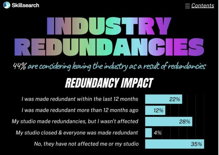 招聘機構 Skillsearch 最新報告顯示,裁員潮正直接影響業界信心,多達44%遊戲開發者表示有意離開行業,主要原因為就業安全不足。