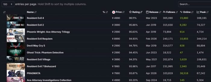 根據SteamDB數據顯示,《人機迷網》目前好評率為93.87%,僅略低於Capcom於今年2月底推出的《生化危機 安魂曲》(94.93%),以及目前評分最高的《生化危機4:重製版》(96.11%)。