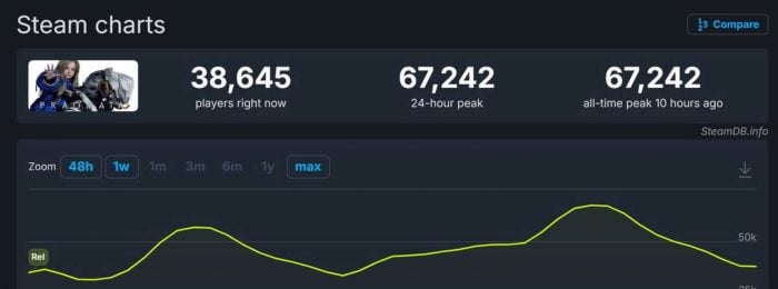 除了評價表現外,《人機迷網》的玩家數據同樣持續上升。Steam同時在線人數峰值由首日約5萬人,進一步提升至6.7萬人,逼近7萬大關。