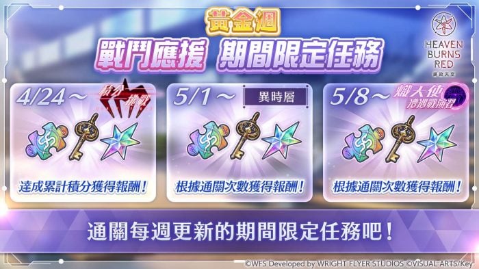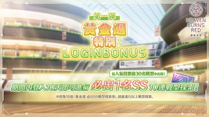 《緋染天空 Heaven Burns Red》舉辦黃金週特別登入獎勵 登入遊戲10天 即可進行必出1名SS的10連戰