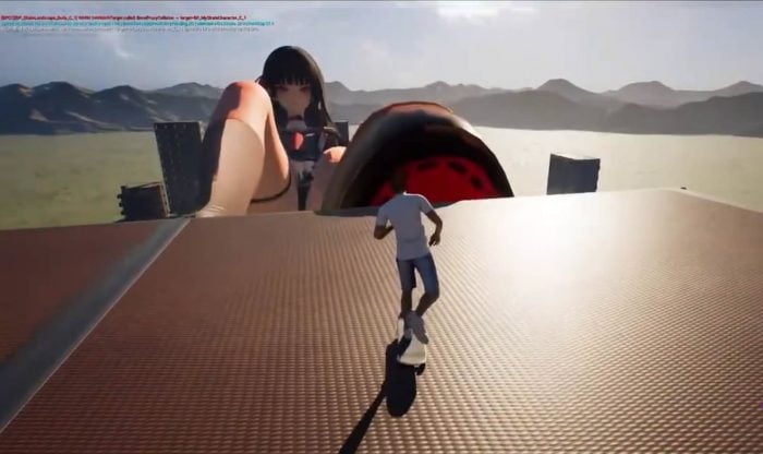 日本獨立開發者 Eagle Won 近日將一個在網絡上流行的荒誕 AI 迷因,於短時間內製作成可遊玩的虛幻引擎 5(UE5)原型。相關示範影片已累積超過 150 萬次觀看,內容展示一名滑板手在一名巨型動漫少女的身體曲線上滑行。