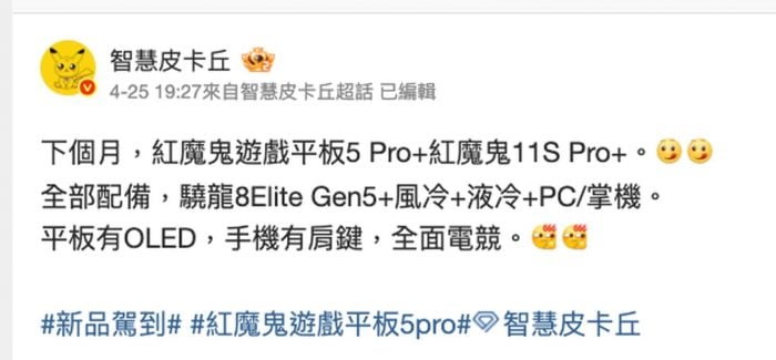 平板 RedMagic Gaming Tablet 5 Pro 185Hz OLED 高刷曝光 預計5月登場
