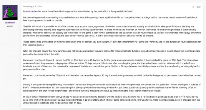 此外,Andshrew 與 DoesItPlay 指出,該變動很可能與 Sony 修補退款相關漏洞有關。過去曾有用戶透過破解主機取得永久授權後再申請退款,藉此免費保留遊戲。透過先發放臨時許可,再於退款期限後轉換為永久授權,能有效降低相關風險。